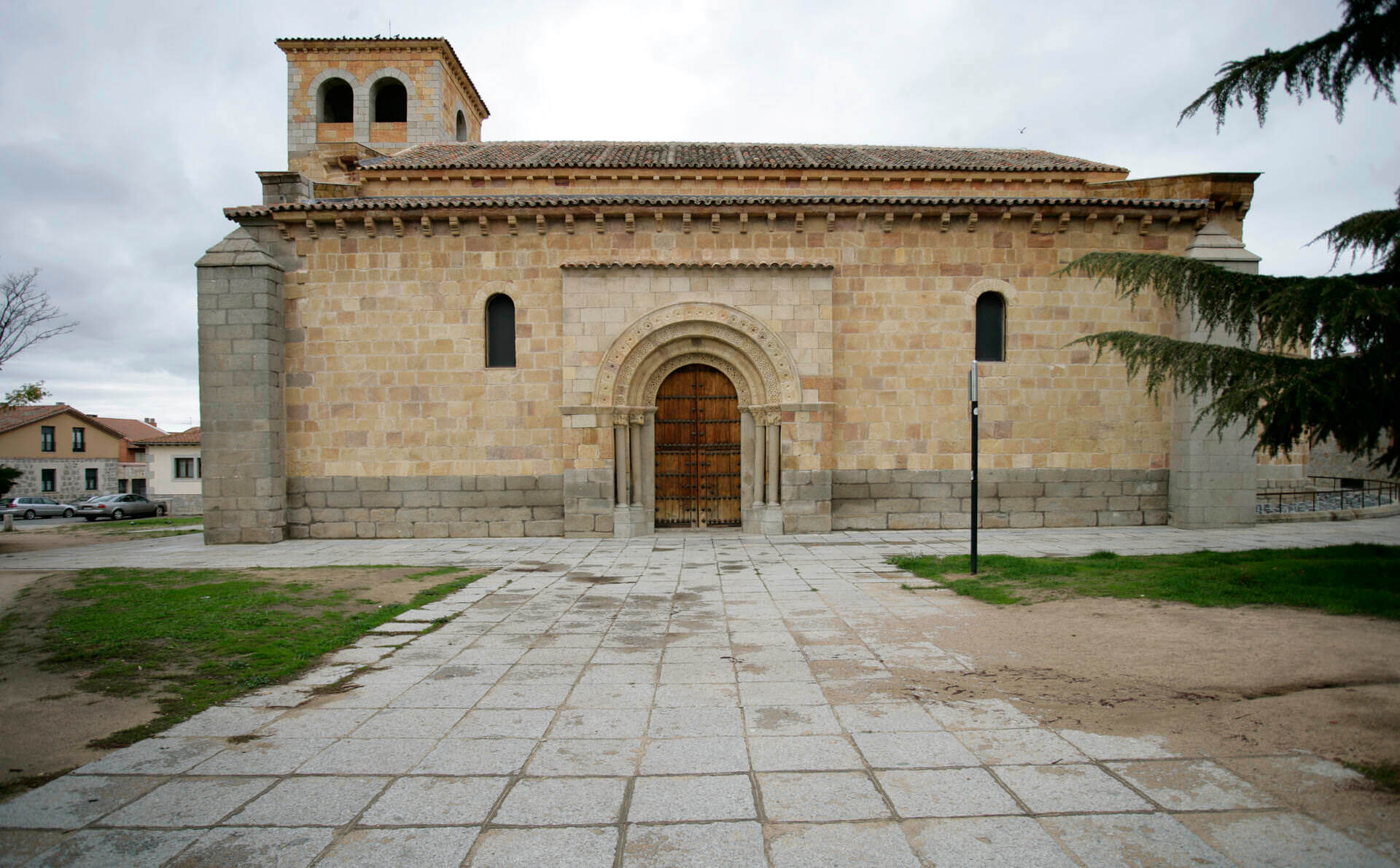 This church was built in the quarter of Ajates (a suburb of mediaeval origin in which the main trade was masonry) in the second quarter of the 12th century. It was made in Caleno granite (very typical of the Romanesque style in the town) and is set according to liturgical criteria with an upper end with three apses that correspond to the three naves in the interior; it does not have a transept nave. The protruding central apse is of particular interest thanks to the number of figures and capitals and the closed arches on the straight section of the upper end, which stand as a unique example of Romanesque capitals. The variety of icons on the interior and exterior capitals is the largest of all of Ávila’s Romanesque buildings and is associated with the Masters of León. The central apse has two absidioles of a smaller size and a plainer composition.